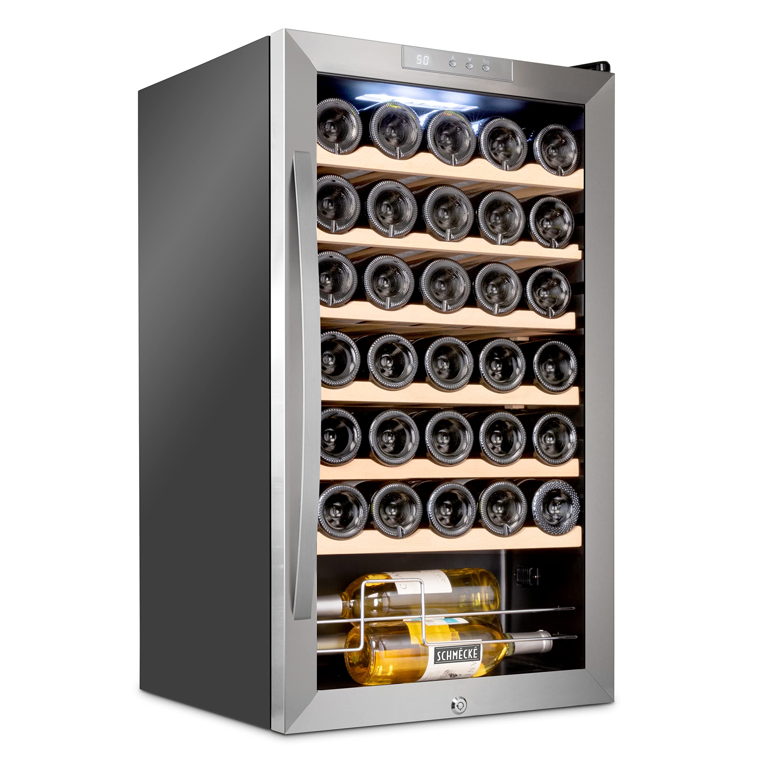 SCHMÉCKÉ 34 Bottle Compressor Wine Cooler Refrigerator w/Lock - Large Freestanding Wine Cellar For Red, White, Champagne or Sparkling Wine - 41f-64f Digital Temperature Control Fridge Stainless Steel