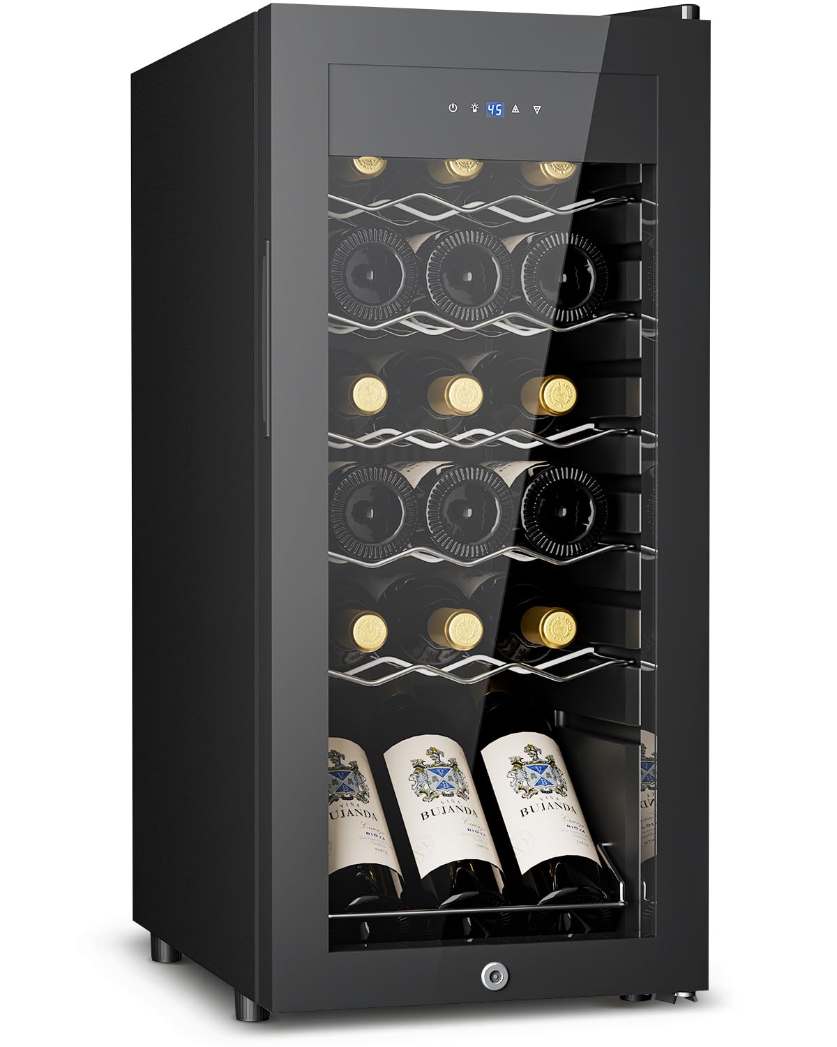 Feelfunn 18 Bottle Wine Cooler Refrigerator - Small Wine Fridge for Red, White, Champagne, Freestanding Wine Cellar with Glas