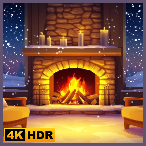 Winter Fireplace Ambience - Cozy Snow Scene Relaxation
