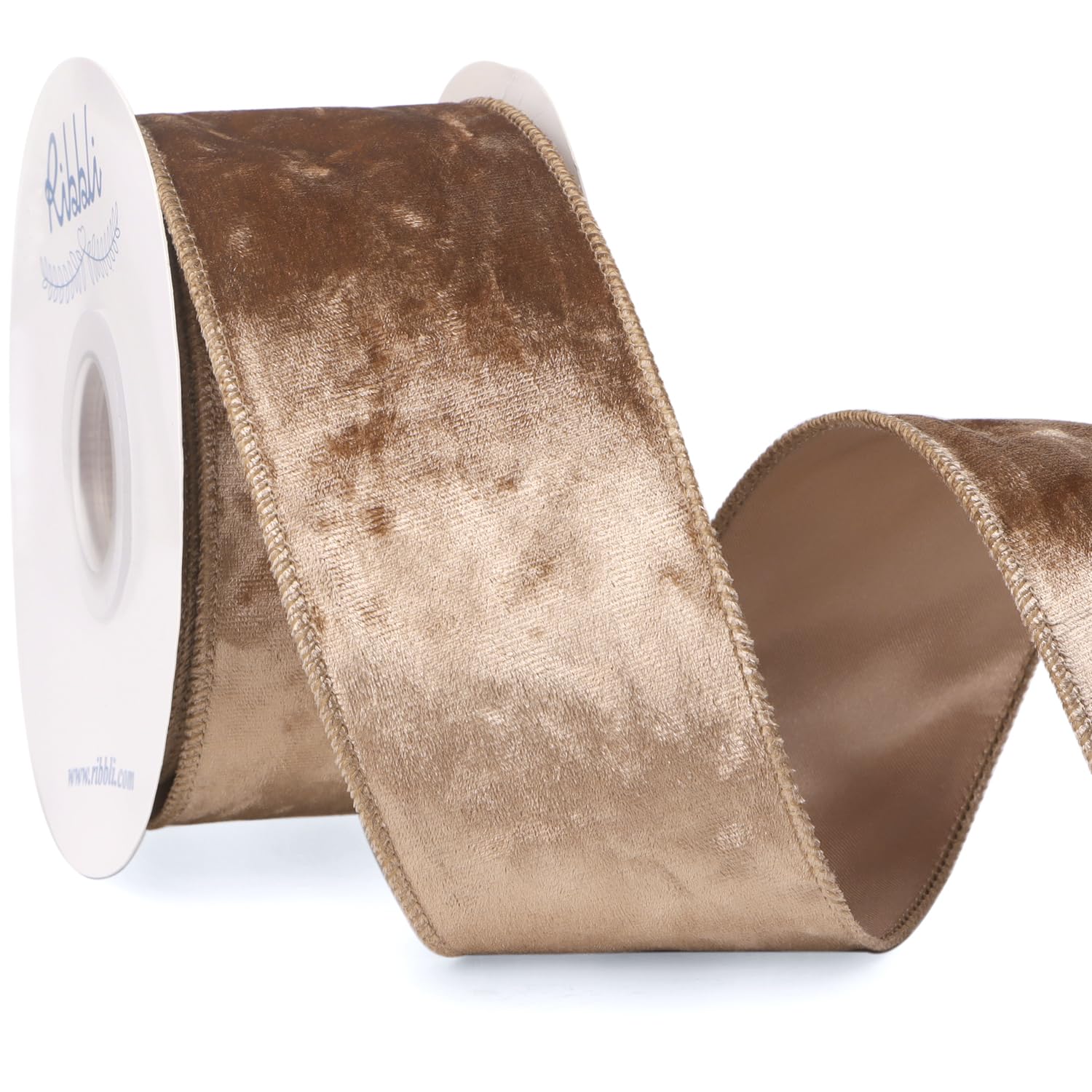 Ribbli Camel Velvet Wired Ribbon 2.5 Inch Crushed Velvet Christmas Ribbon for Gift Wrapping Christmas Tree Decoration Crafts Wreaths Supplies-Continuous 10 Yards