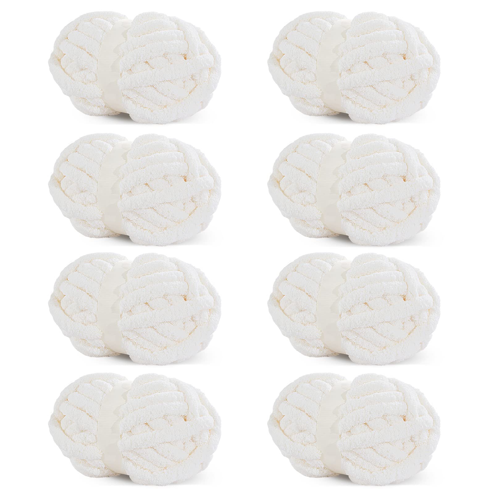 HOMBYS White Chunky Chenille Yarn for Crocheting, Bulky Thick Fluffy Yarn for Knitting, Super Bulky Chunky Yarn for Hand Knit