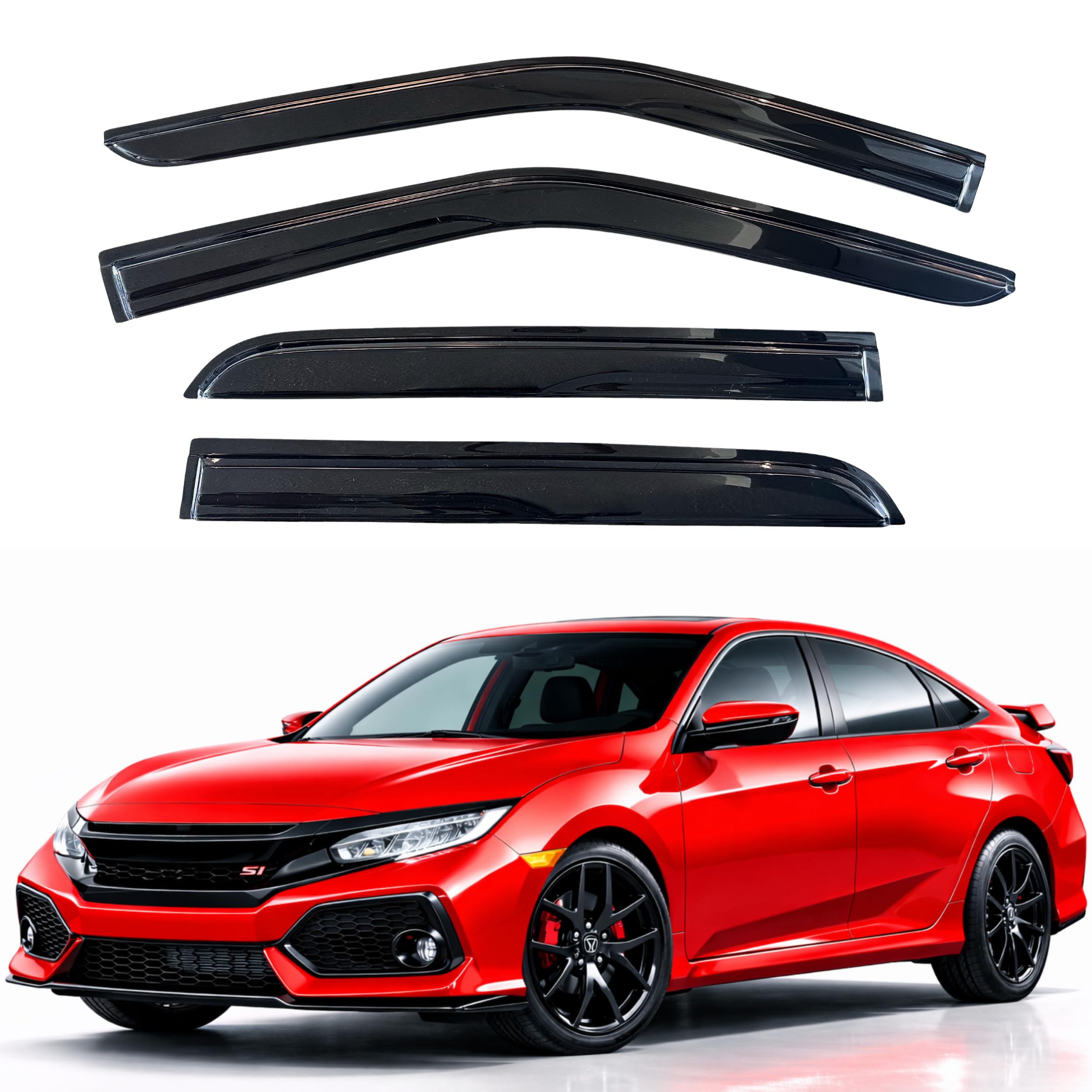 • 【Perfect Fit】KPY Out-Channel Rain Guards fits only for 2016 2017 2018 2019 2020 2021 16 17 18 19 20 21 Honda Civic, 4PC Window Visors Vent Deflectors. (Sedan Only)