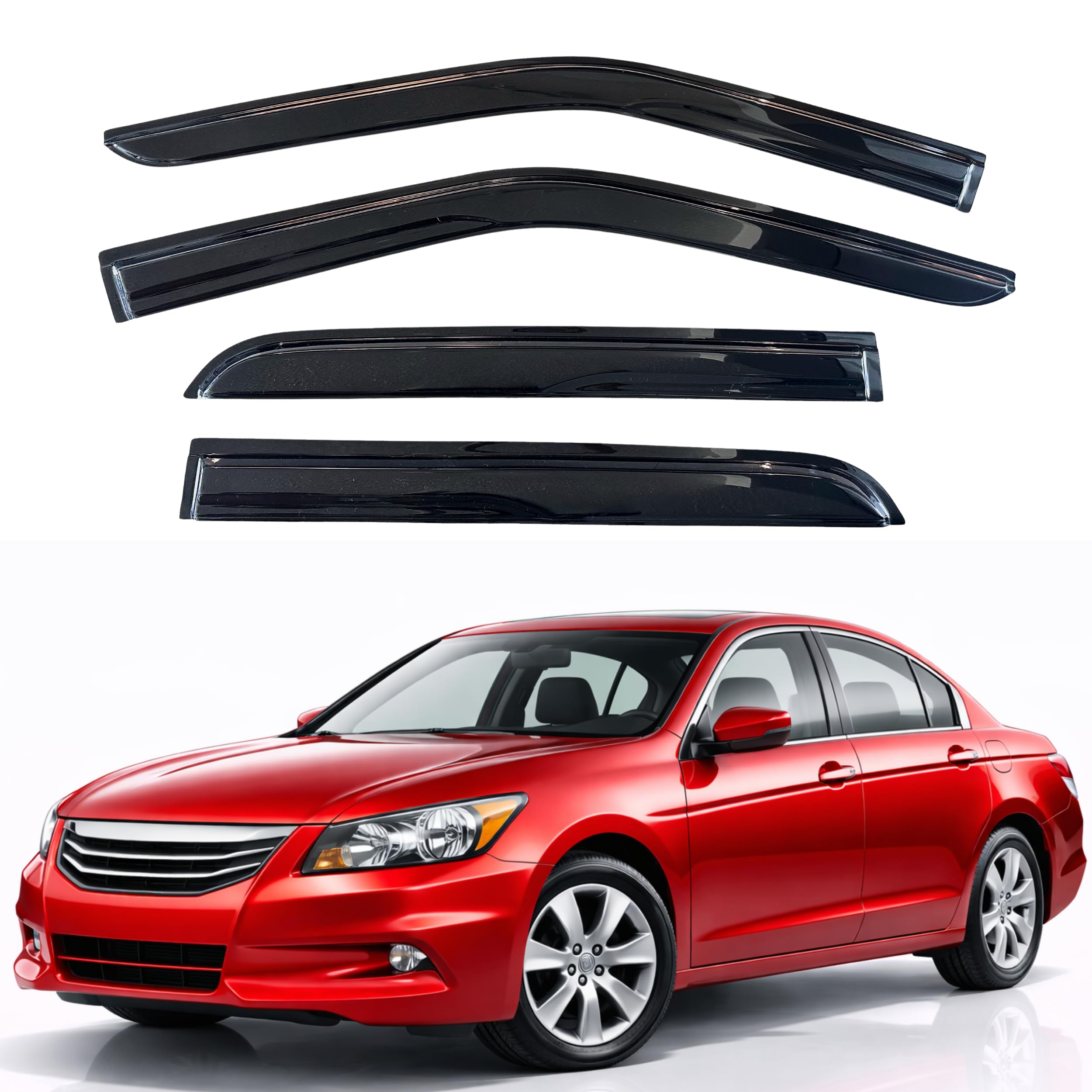 - 【Perfect Fit】KPY window visors rain guards vent deflectors compatible with Honda Accord Sedan 2008 2009 2010 2011 2012 (Mugen Style)