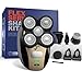 Freebird FlexSeries Electric Head & Body Hair Shaver - Mens Cordless Rechargeable Wet/Dry Skull Bald Head Back & Groin Waterproof Razor with Rotary Blades, Clippers, Nose Trimmer, Brush, Massager