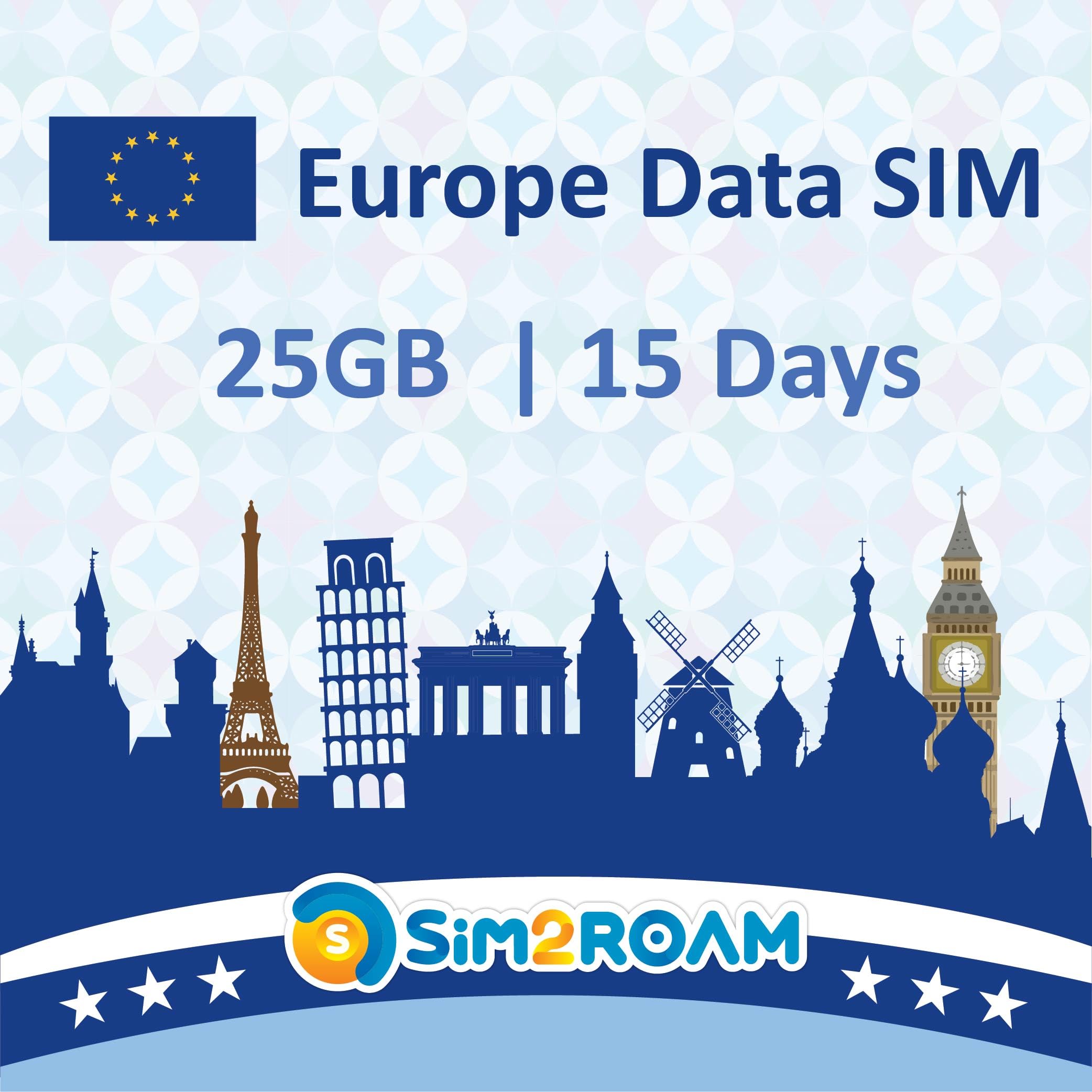 Europe Data ONLY SIM Card 15Days | 25GB of 5G/4G LTE High Speed Prepaid Data Sim Card | Good Connection | REFILLABLE! (25GB /