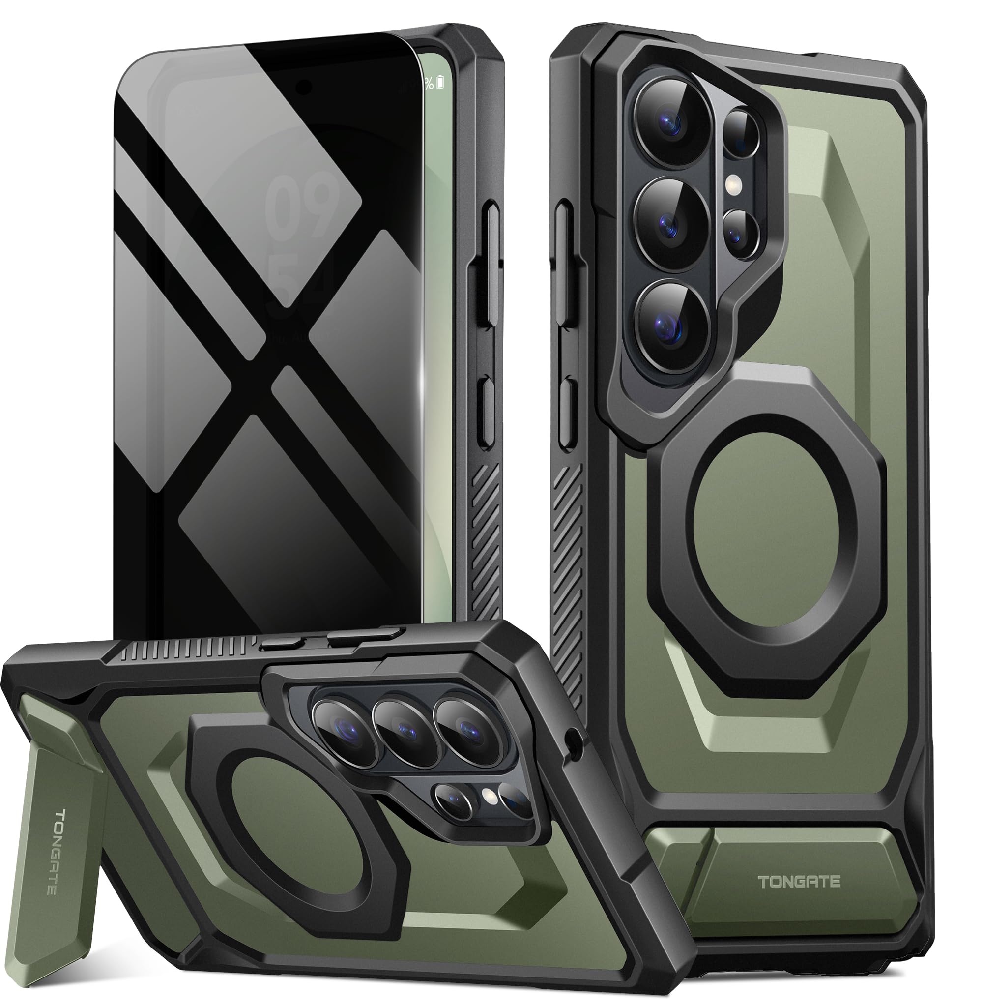 TONGATE Magnetic for Samsung Galaxy S26 Ultra Case with Aluminum Alloy Kickstand, Compatible with MagSafe, TPU Non-Slip Edge, Military Grade Protection Shockproof Phone Case for S26 Ultra, Green