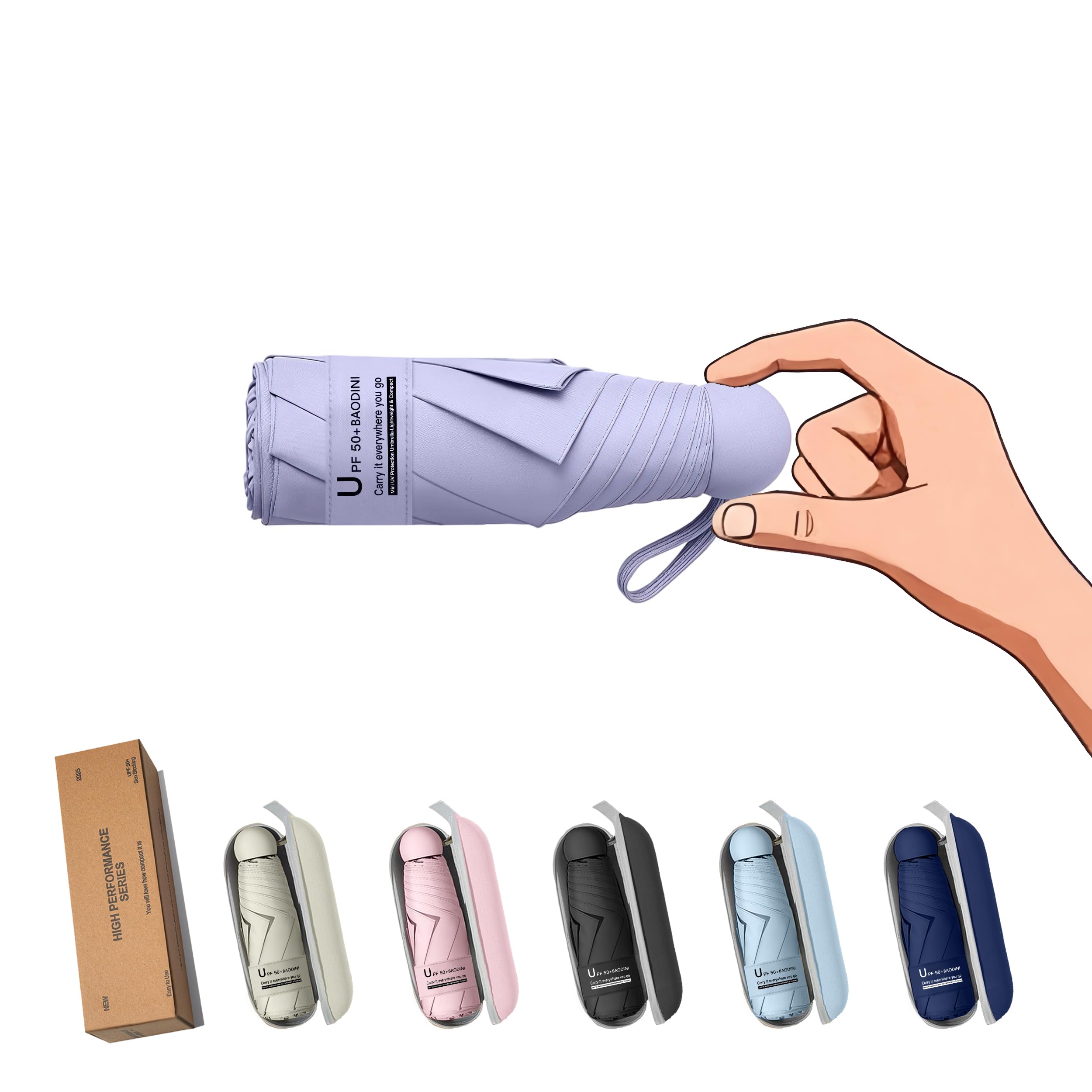 BAODINI Travel Essentials Mini Umbrella for Purse With Case Small Compact UV Sun Protection Lightweight Tiny Pocket Manual Op
