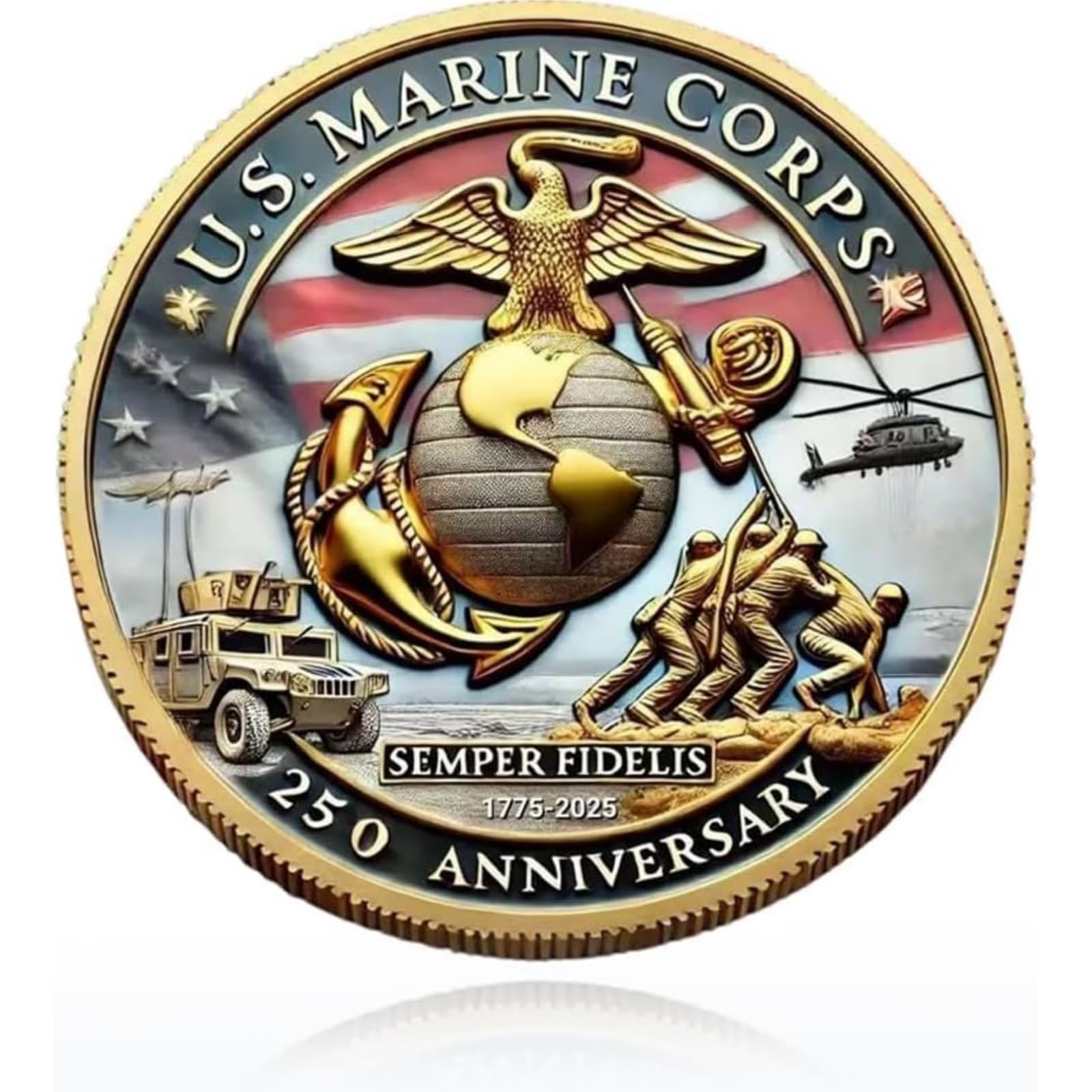 USMC 250th Anniversary Challenge Coin – 1775-2025 Double-Sided U.S. Military Commemorative Coin 1.77" Marine Corps Collectibl