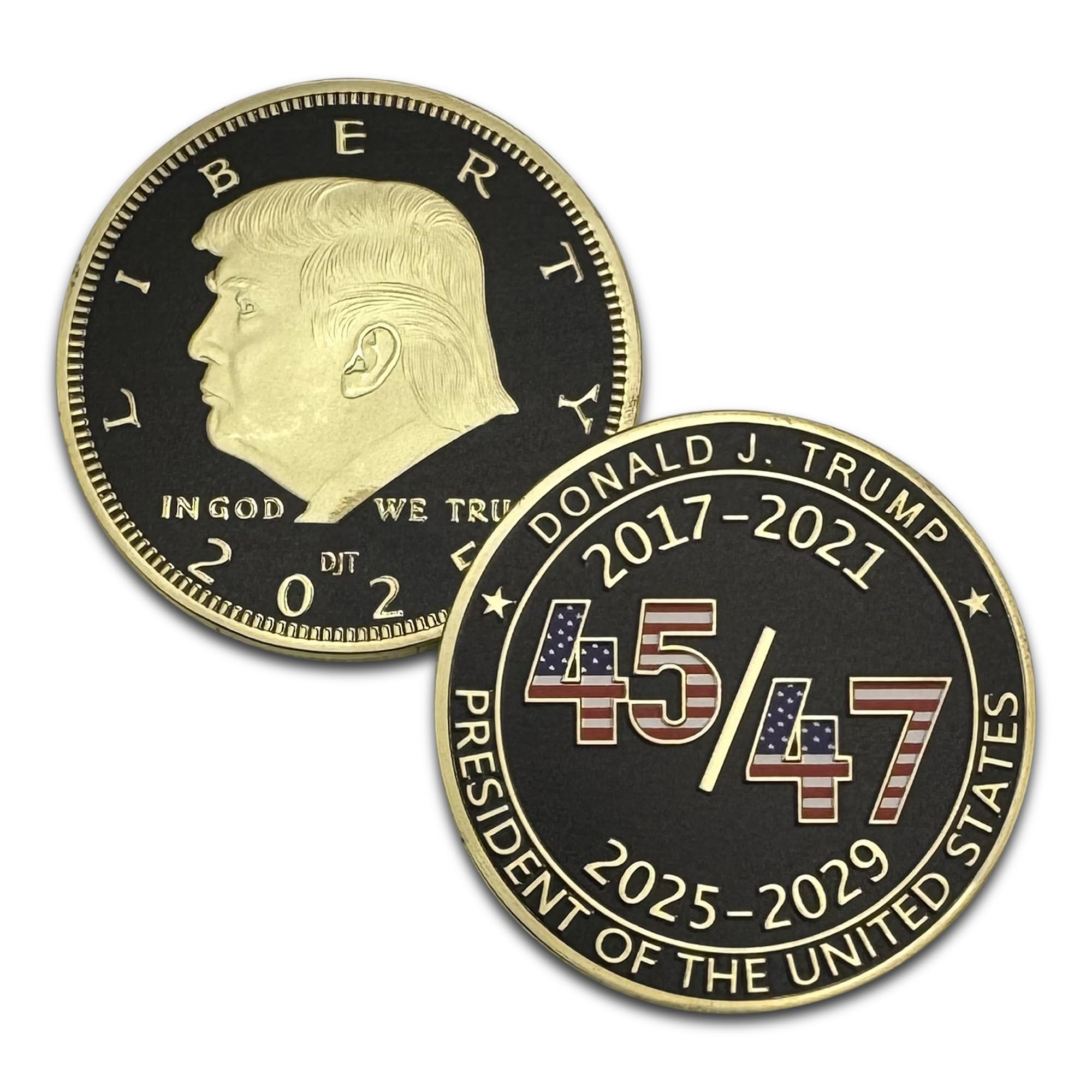 Aizics Mint President Donald Trump 45 47 2025 24kt Gold Challenge Coin, Trump Coin Collectors Souvenir, 45 & 47 with Red Whit