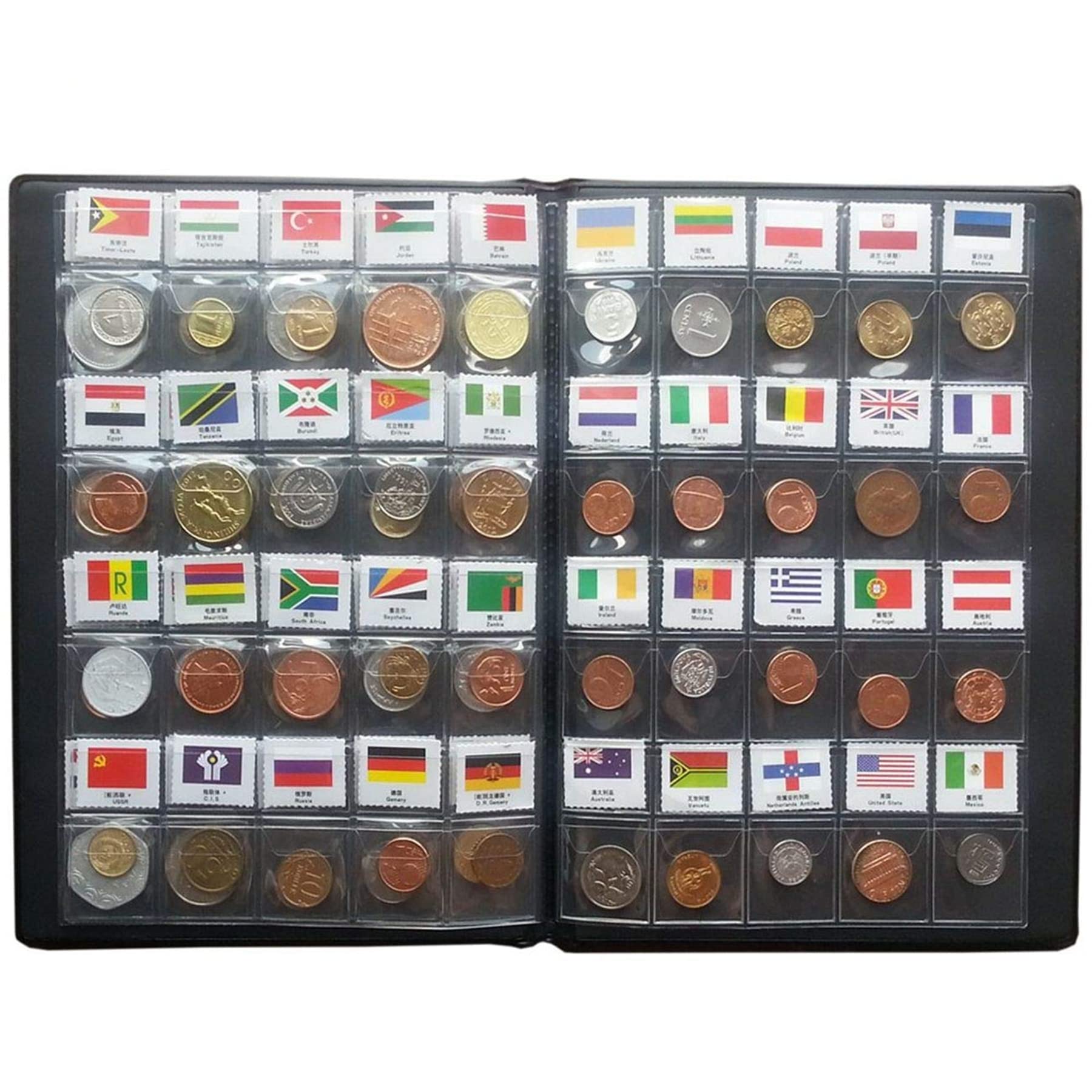 Coin Collection Starter Kit 60 Countries Coins/100% Original Genuine/World Coin with Leather Collecting Album Taged by Country Name and Flags/Coin Holder Collection Storage Classic Gifts