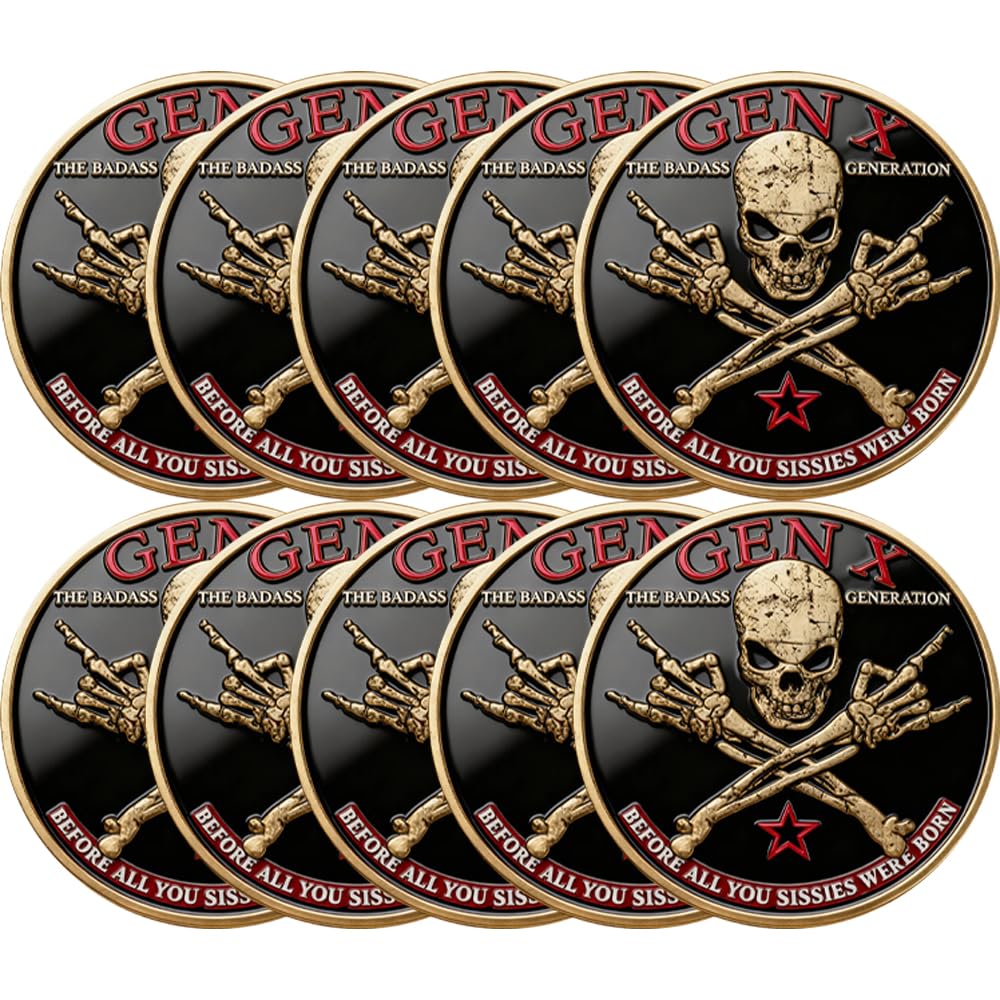 GEN X Coin – The Ultimate Tribute to The Badass Generation, Gen X Skull Coin, Vintage Generation X Commemorative Coin, Proud Member Generation X Challenge Coins (10PCS)