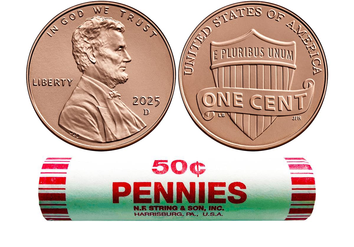 2025 D Lincoln Cent Roll Uncirculated UNC 50 Penny Union Shield