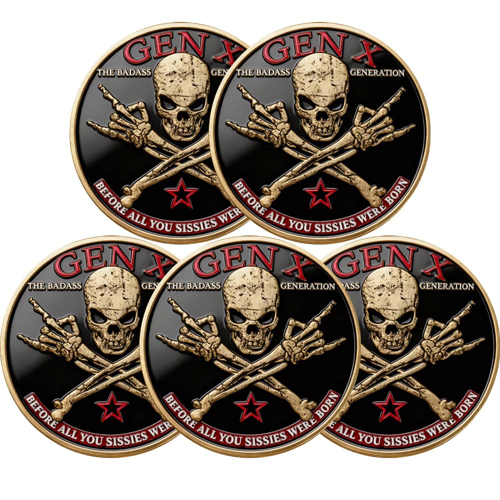 GEN X Coin – The Ultimate Tribute to The Badass Generation, Gen X Skull Coin, Vintage Generation X Commemorative Coin, Proud Member Generation X Challenge Coins (5PCS)