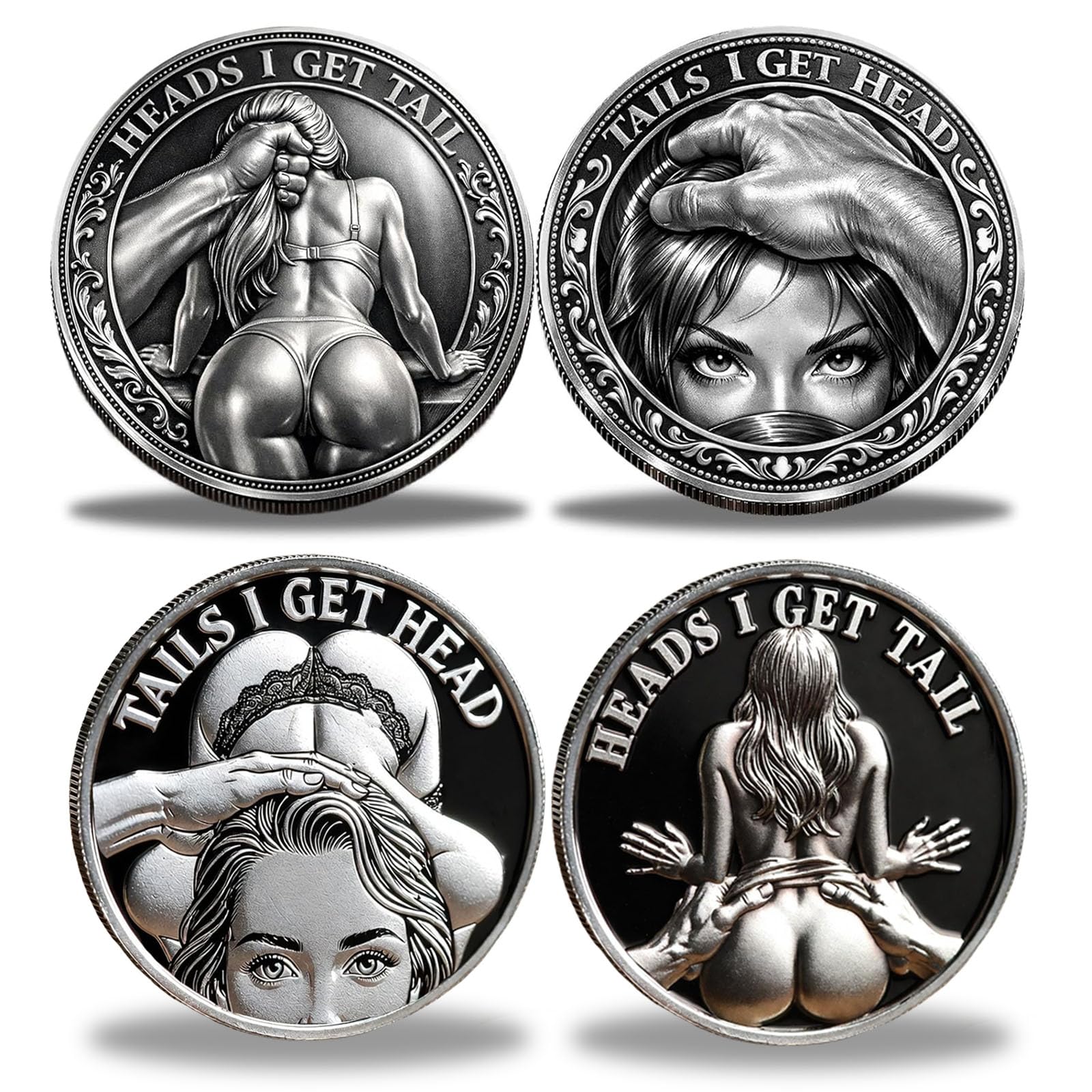 2pcs Heads I Get Tail/Tails I Get Head Commemorative Coin, Funny Heads and Tails Challenge Coin, Decision Coins for Couples, Humor Prank Gift for Adults Date Night Ideas