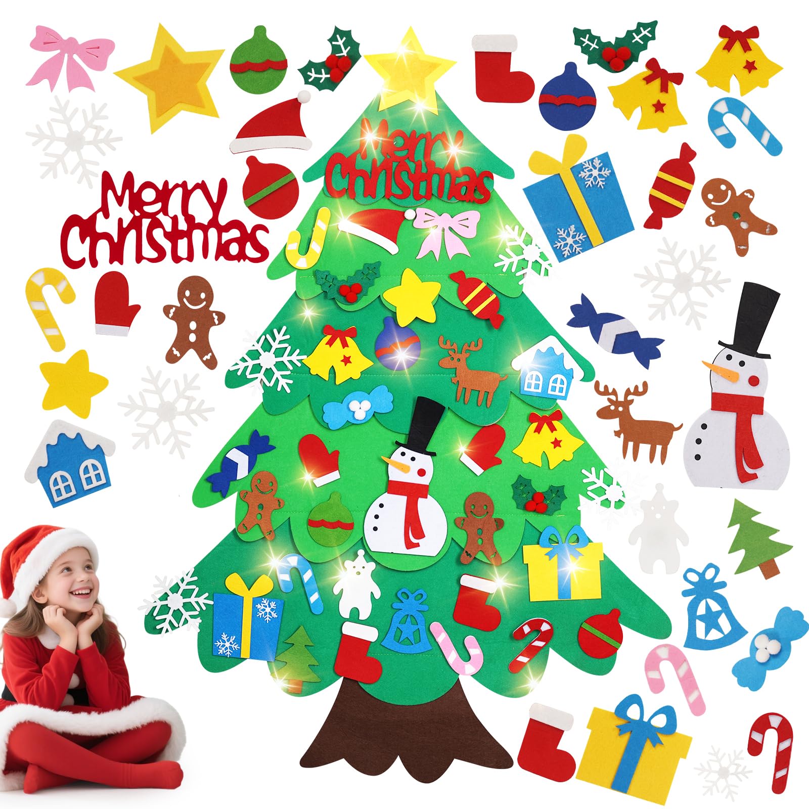 - ManyGreat for toddlers!Such a fun Christmas activity for kids! The felt pieces stick easily and can be moved around over and over. Perfect size for little hands and keeps my toddler entertained. The lights add a festive touch and make it feel magical. Quality is nice and it comes with plenty of decorations. Great way to decorate without worrying about broken ornaments! Highly recommend for families with young kids.