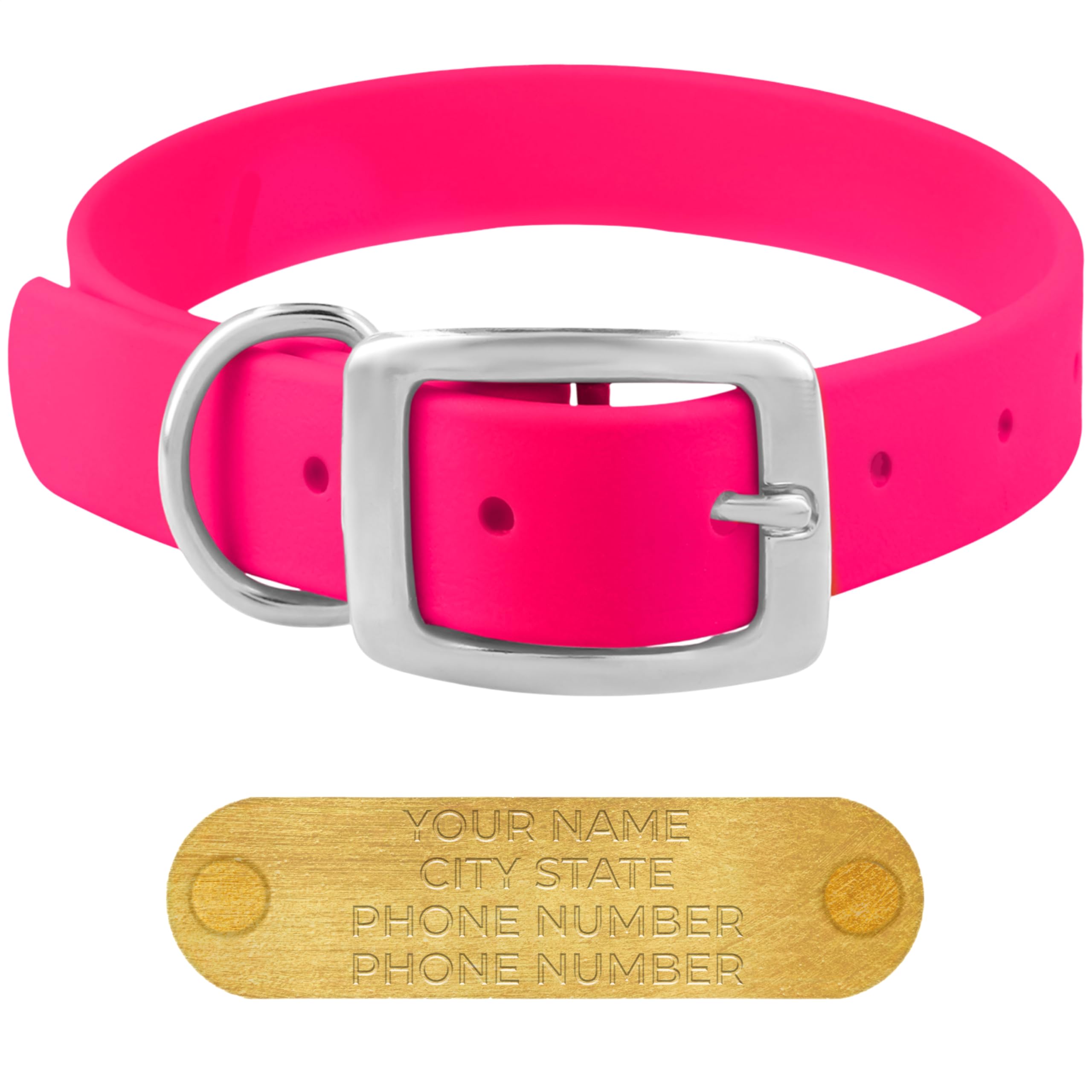 Regal Dog Products Medium Pink Waterproof Dog Collars with Custom Engraved Name Plate | Vinyl Coated, Anti, Easy to Clean Per