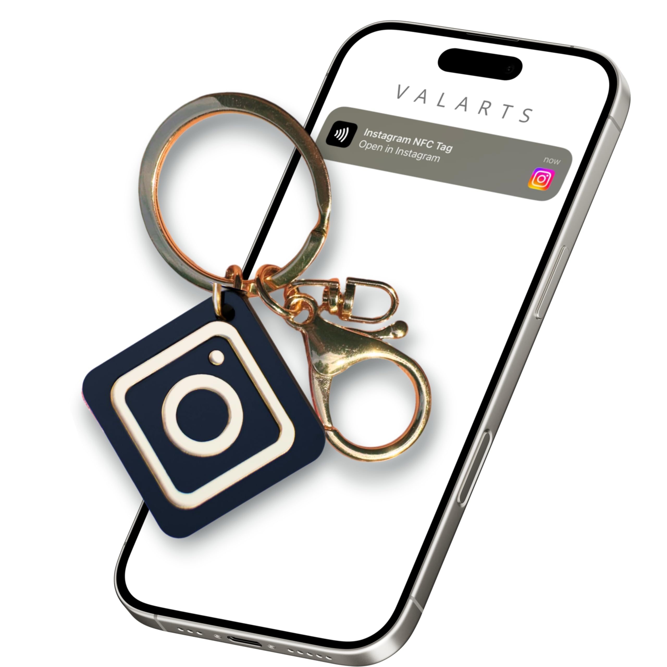 VALARTS NFC Keychain Digital Business Card – Instantly Share Contact, Instagram & Social Media – Ntag213 Black & Gold