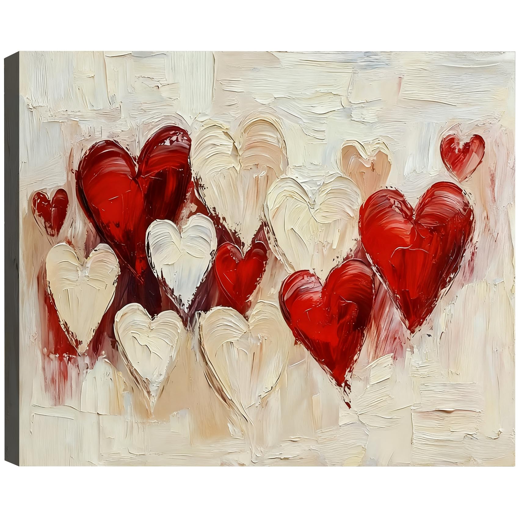 The Colors: The "Romantic Red" is incredibly deep and saturated. It pops beautifully against the canvas, making the hearts the undisputed star of the wall. It feels warm, inviting, and perfect for the season.