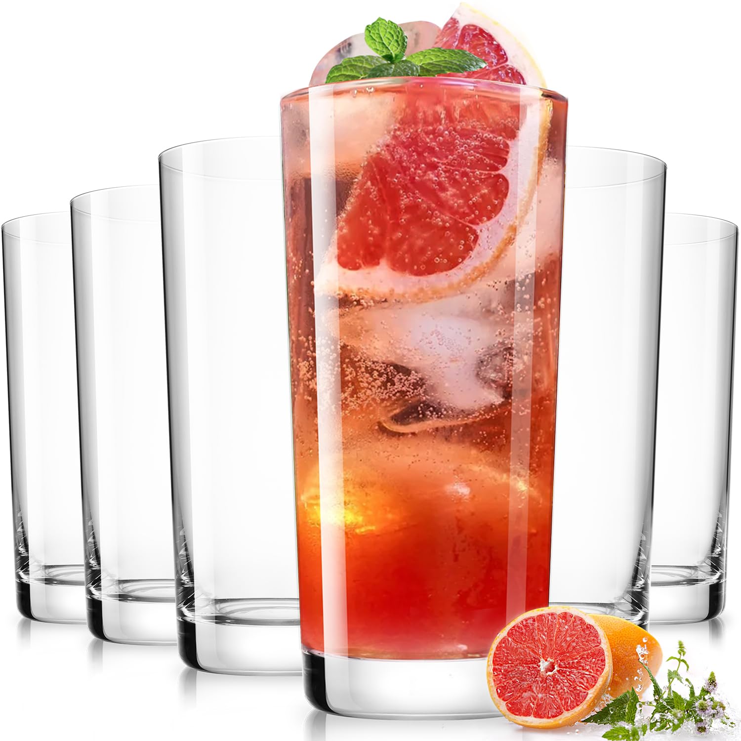- MULTIFUNCTIONAL HIGHBALL GLASSES: This highball glasses set of 6 not only holds water, juice, cocktails, beer, Long Island Iced Tea, and other everyday beverages; it's also ideal for Tom Collins glasses, Mojito's glasses, Pint's glasses, and Bloody Mary's glasses in restaurants and bars. Whether you're using them for everyday use or entertaining guests or enjoying a quiet evening, these clear glass cups add sophistication and glamour to every sip