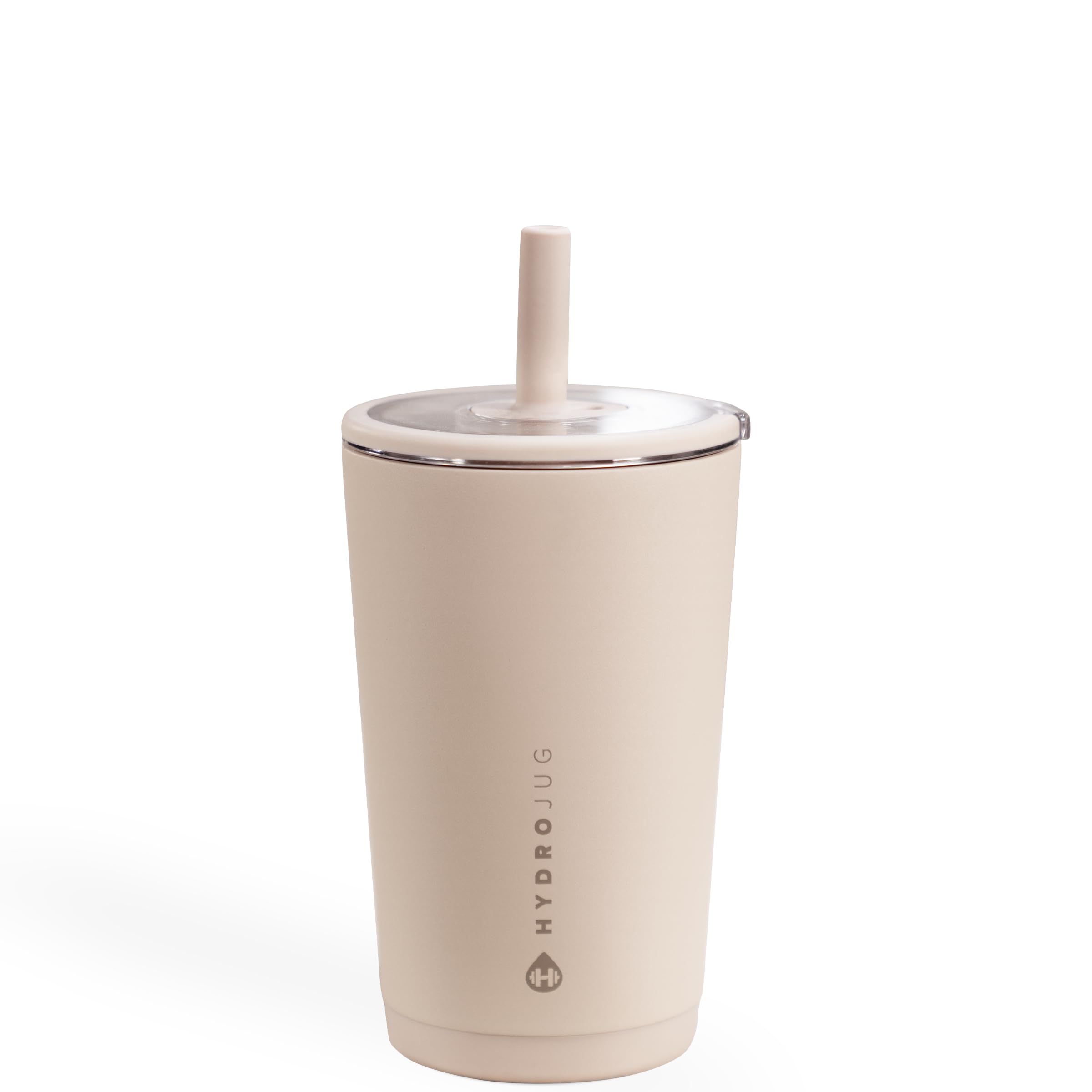 HydroJug Everyday Tumbler 14 oz – Ceramic-Lined Insulated Tumbler with Straw and Soft-Touch Lid, Cup Holder Friendly, Double-Wall Vacuum Insulation, Reusable Travel Cup – Dune