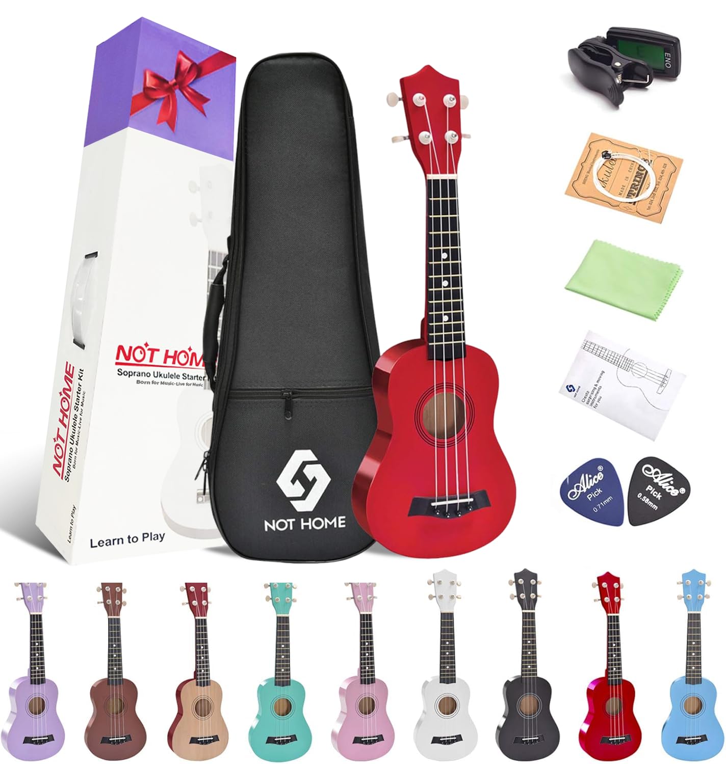 NOT HOME Soprano Ukulele Beginner Pack, 21 Inch Basswood kids Ukuleles Starter Kit with Gig Bag Spare Strings Tuner and Picks