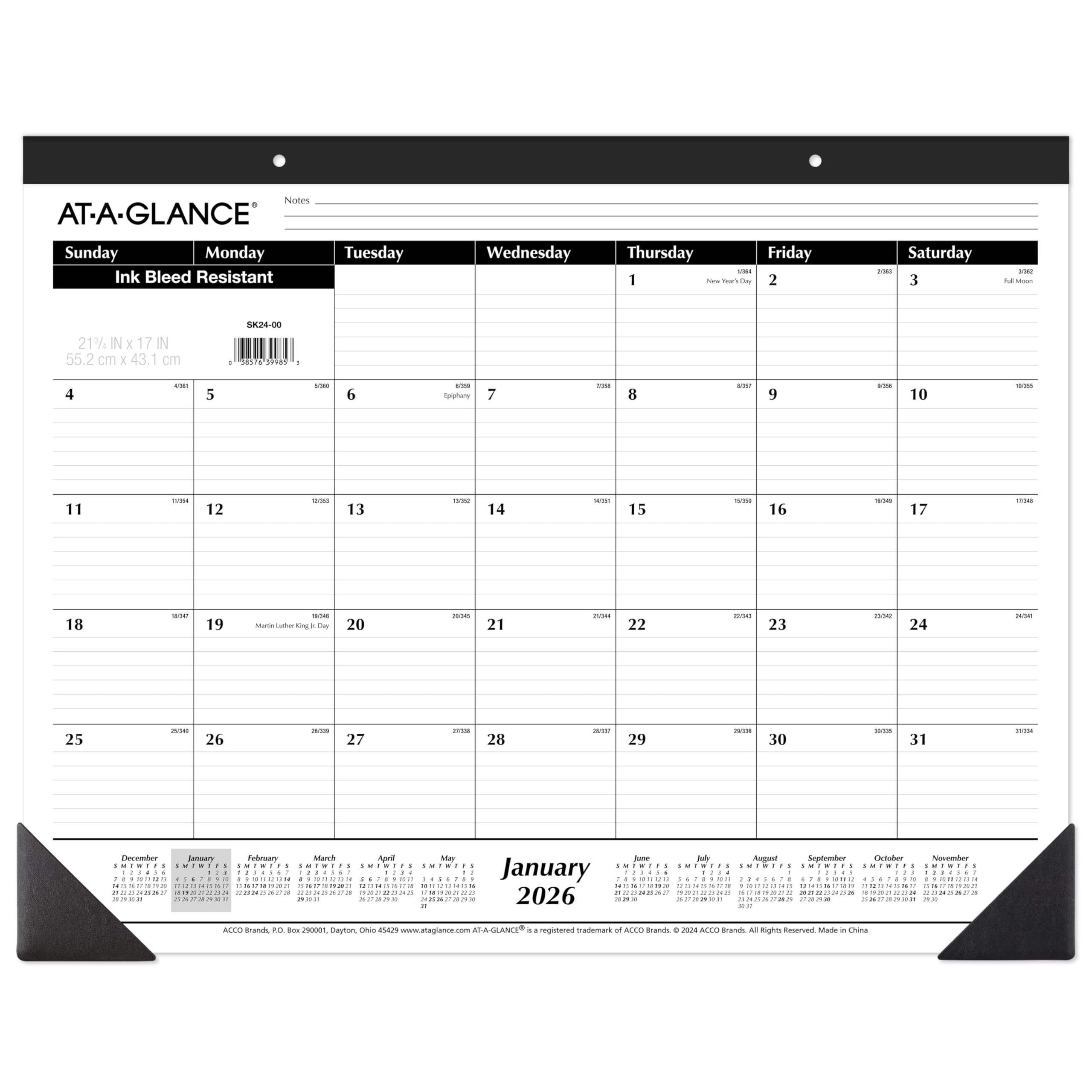 AT-A-GLANCE 2026 Desk Calendar, Monthly, Desk Pad, 21-3/4" x 17", Large, Ruled Blocks (SK240026)
