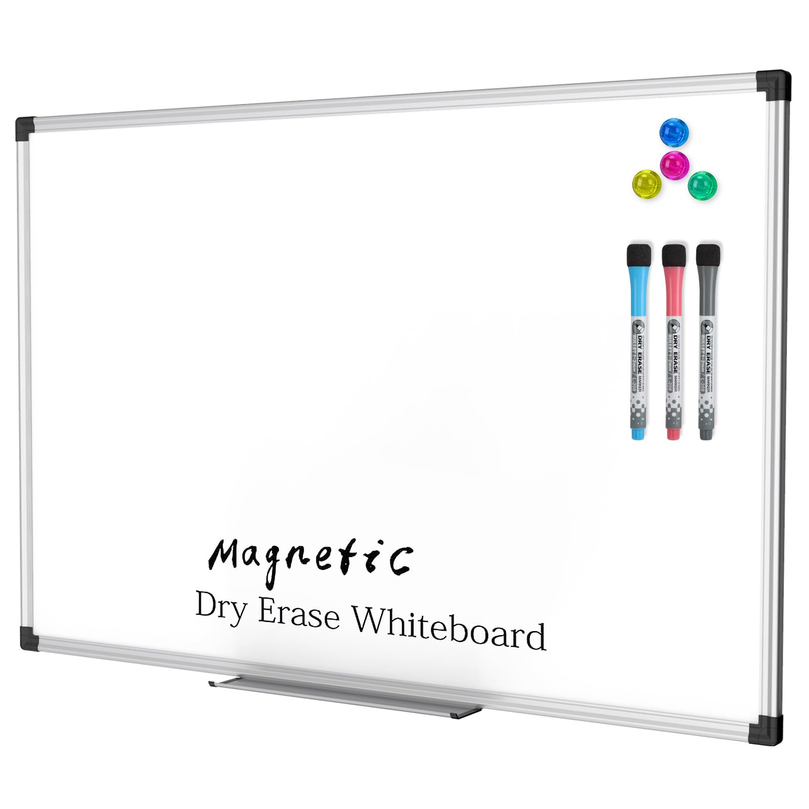 • 【Premium Magnetic White Board】Overall Size (frame included): 35.6" x 23.8", Writing Surface Size: 34.5" x 22.6"; Comes with 1 dry eraser, 3 dry erase markers, 4 magnets, 1 pen holder and fixing kits. Great help for business professional, project manager, clerk, teacher, student and parent etc.