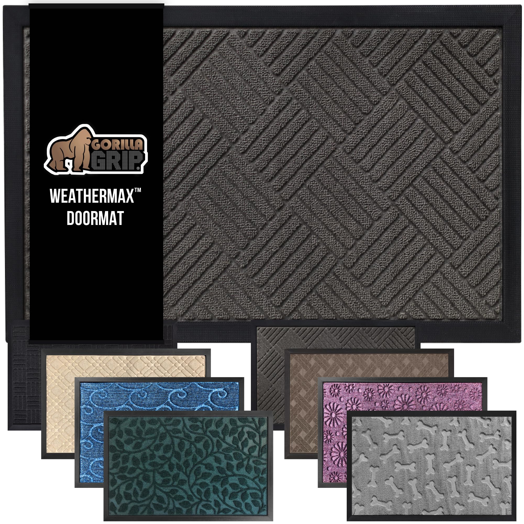 - THE ORIGINAL WEATHERMAX ALL SEASON DOORMAT: Gorilla Grip's Original WeatherMax welcome mat is built tough with a heavy duty, yet soft and flexible construction; deep grooves, beveled rubber border and retention dam on doormat help capture dirt, debris and moisture; front door mat compliments outdoor xmas décor and is perfect for holiday gifting