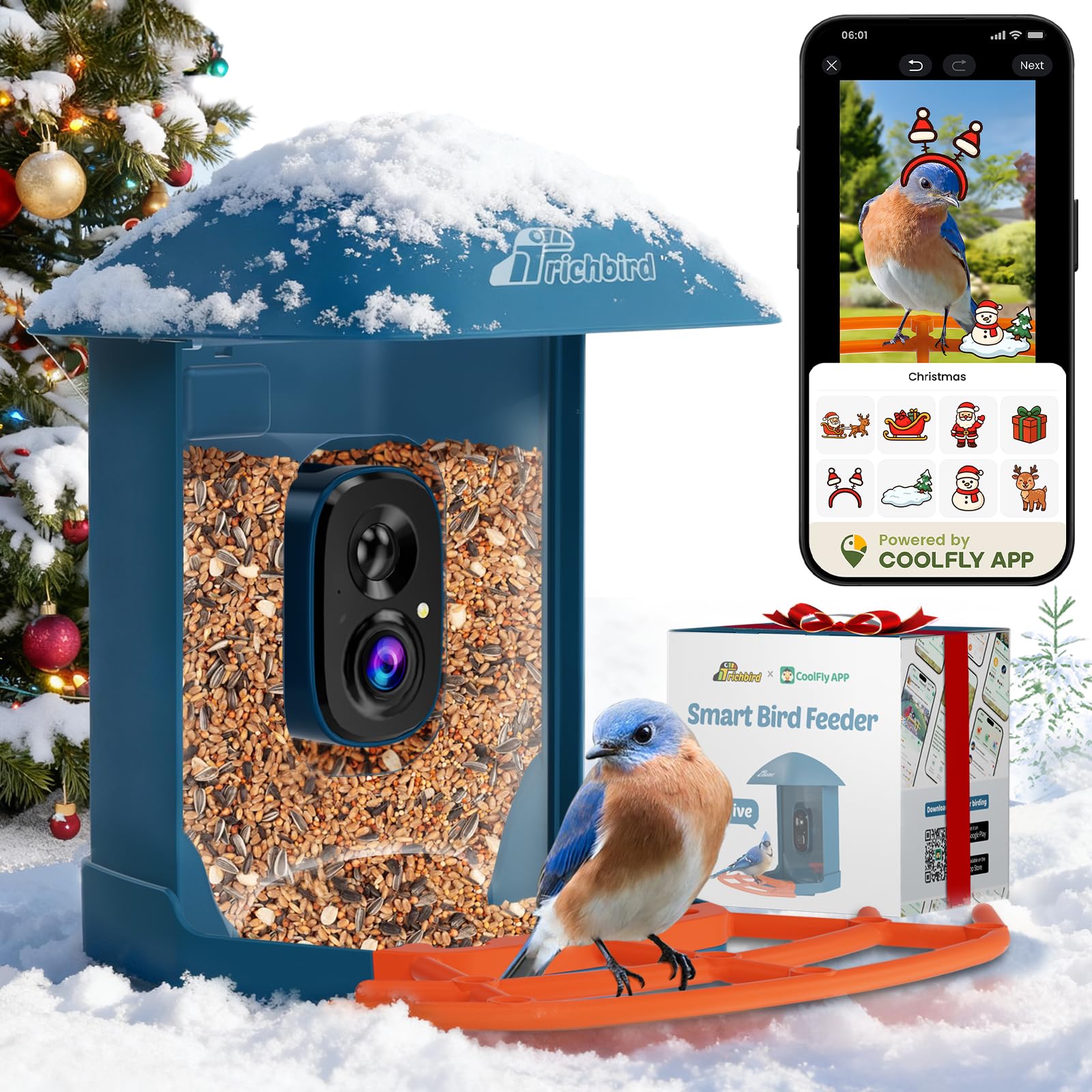 Smart Bird Feeder with Camera, 2K HD Birdwatching Camera with AI Identify Bird Species & Solar Panel, Auto Video Capture & Instant Notifications, Ideal Gifts for Lover, Deep Blue