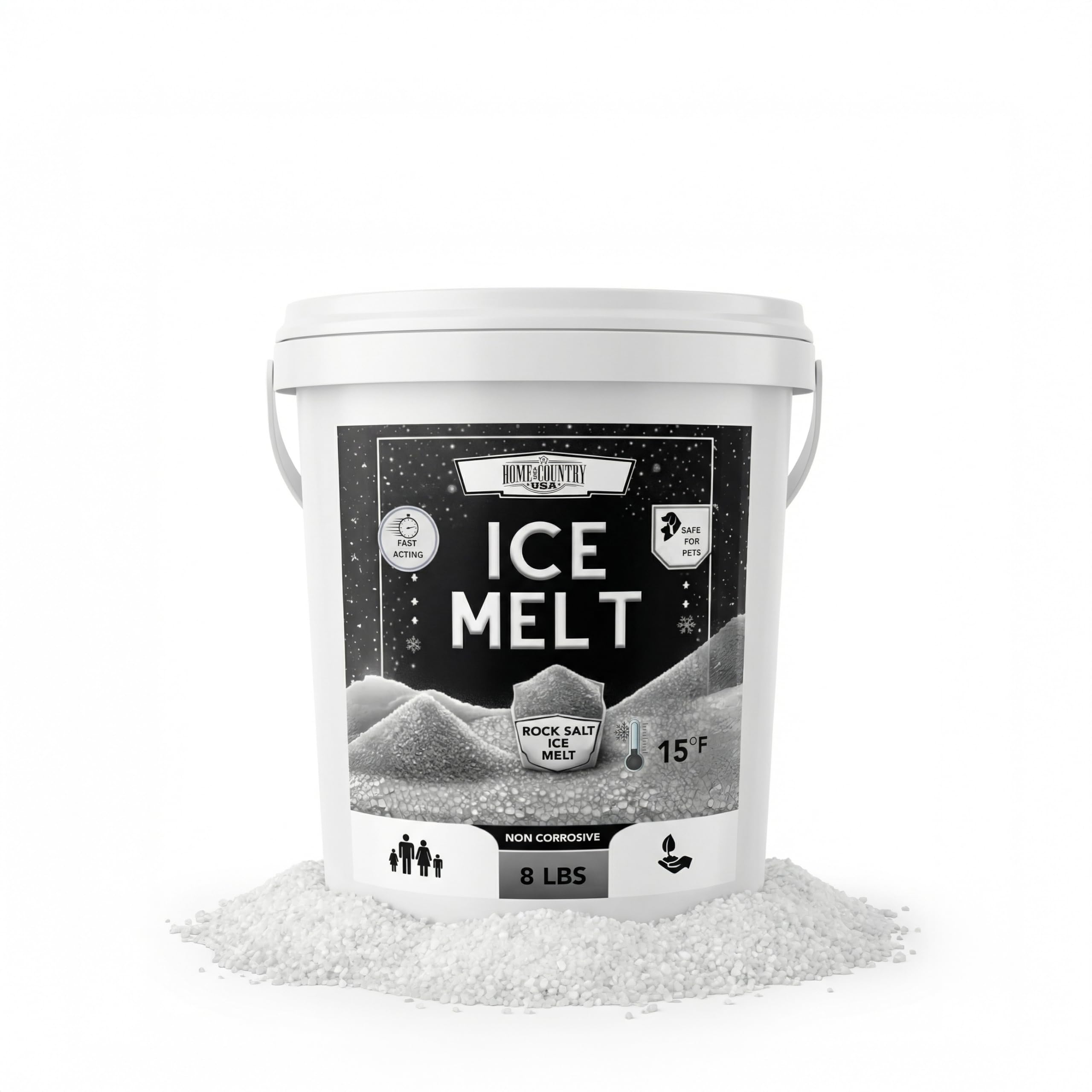 Rock Salt Ice Melt Pail Effective to -25°F, Eco-Friendly De-Icer, Optimal Granule Size for Quick Melting, Ideal for Driveways, Walkways, and Entryways (8 lb)