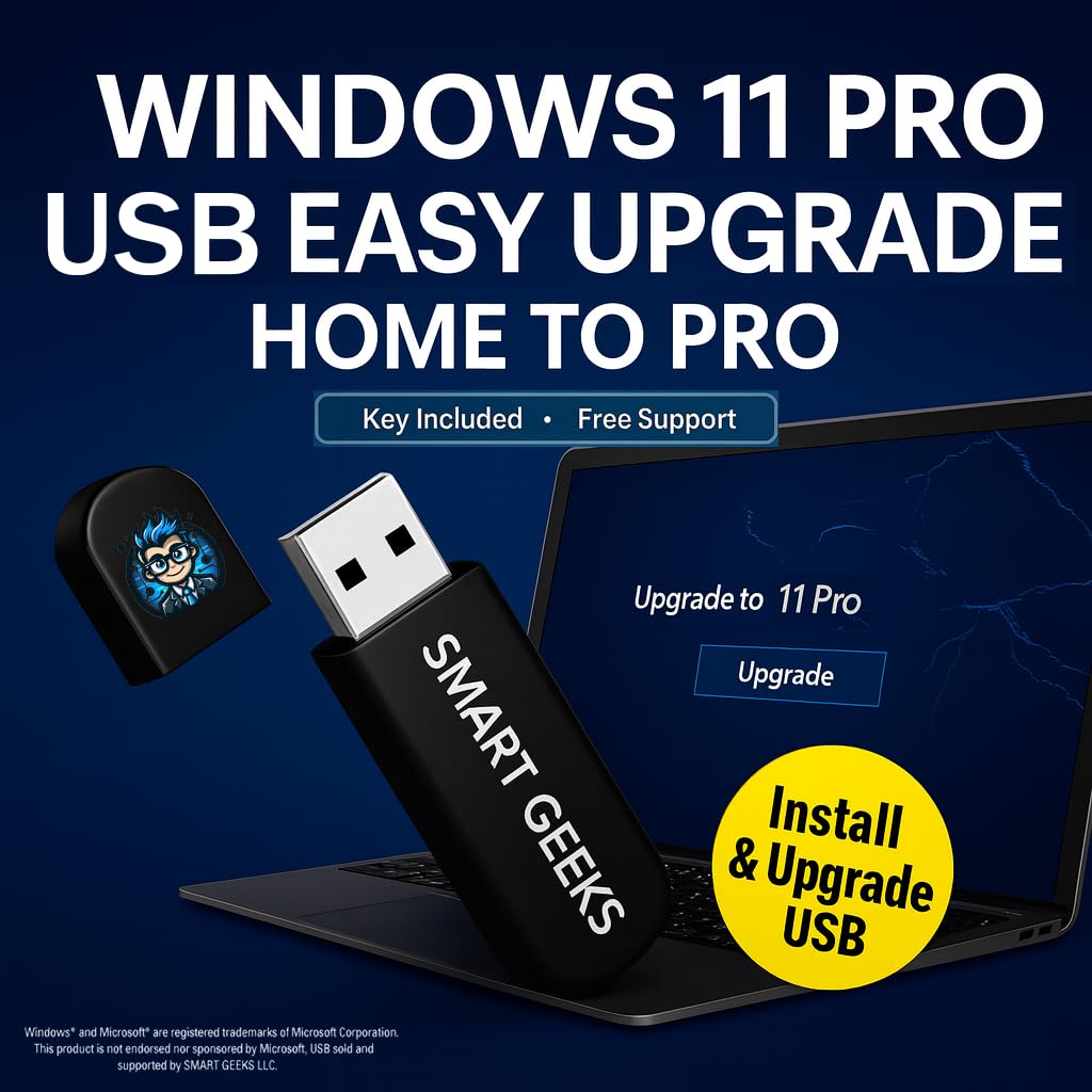 USB Upgrade for Windows 11 Home to Pro - USB With Key. Upgrade, Recover, Repair and Restore. Key Included and USB Install. Fi