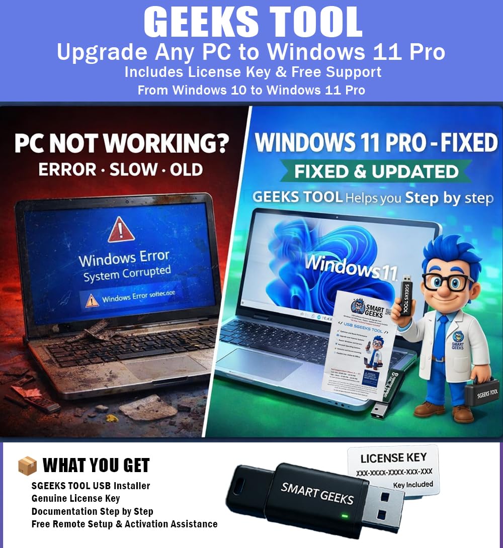 - Includes Genuine License Key – Each USB tool includes a verified Pro license key. Activates your PC securely with Smart Geeks LLC technology for authentic and reliable results.