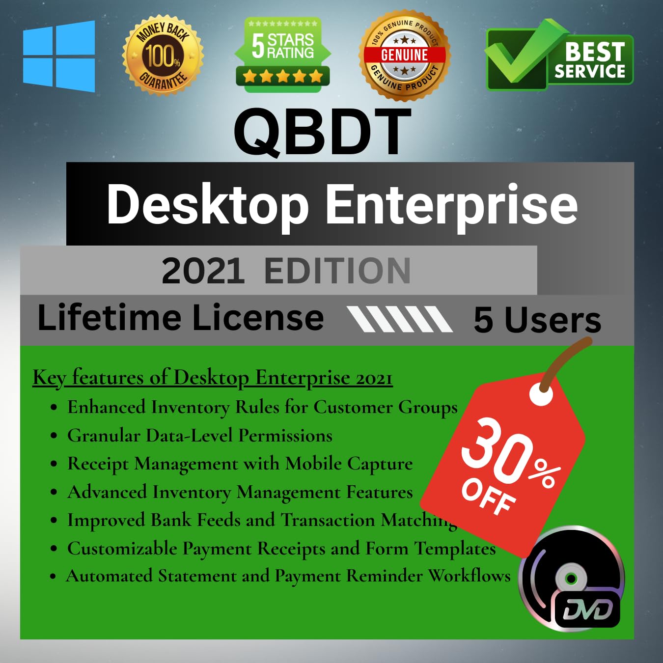 Quick - Book Desktop Enterprise 2021 | DVD | Lifetime License | 5 Users | 100% Money-Back Guarantee