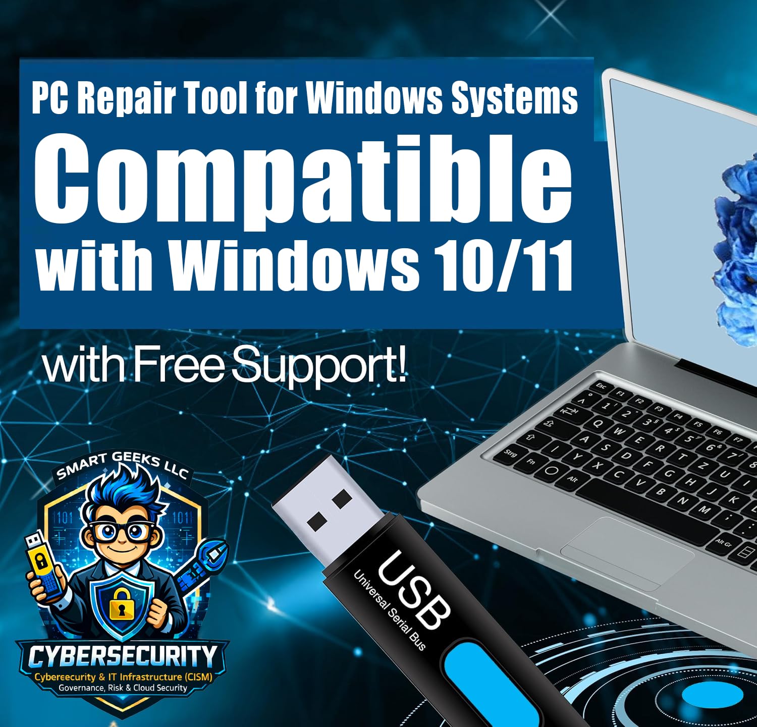 Smart Geeks – PC Recovery & Upgrade USB Tool | Compatible with Windows 11 and Windows 10 | System Repair, Clean Install & Res