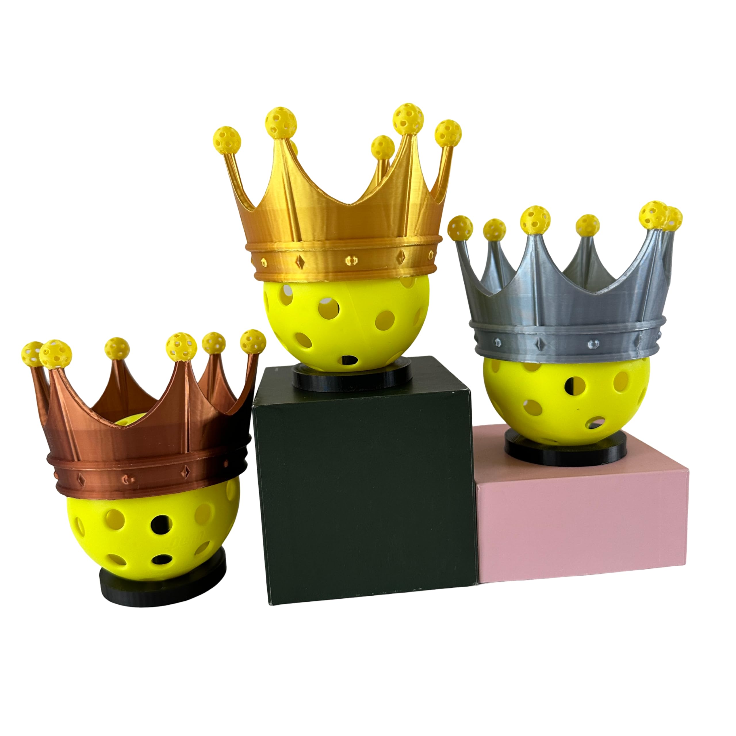 - Angela McKenzieAbsolutely Perfect For Our Women’s Pickleball TournamentI can’t say enough about how much I loved these pickleball crown trophies! I ordered the gold, silver, and bronze crowns with the little mini pickleballs on top, and they completely exceeded my expectations.
