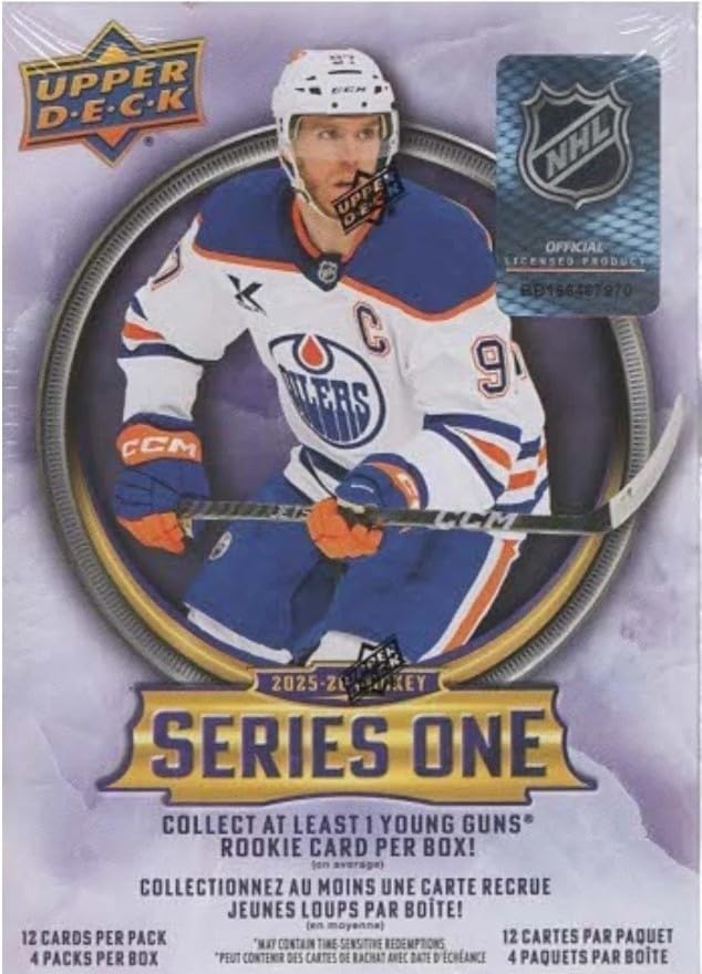 • This is a brand new 2025 2026 Upper Deck Hockey Series One Factory Sealed Unopened Blaster Box that contains 4 packs with 12 cards per pack for a total of 48 cards!