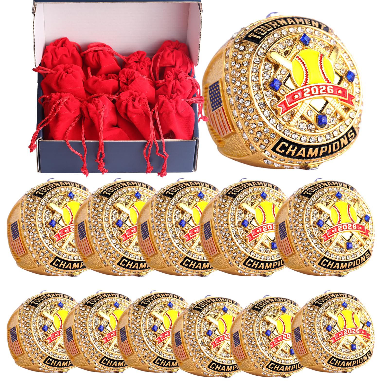 TOPSPORTSJEWELRY 2 pcs Pack or 12 pcs Pack Softball Championship Trophy Ring Award Gift for Tournament Champion Team palyers