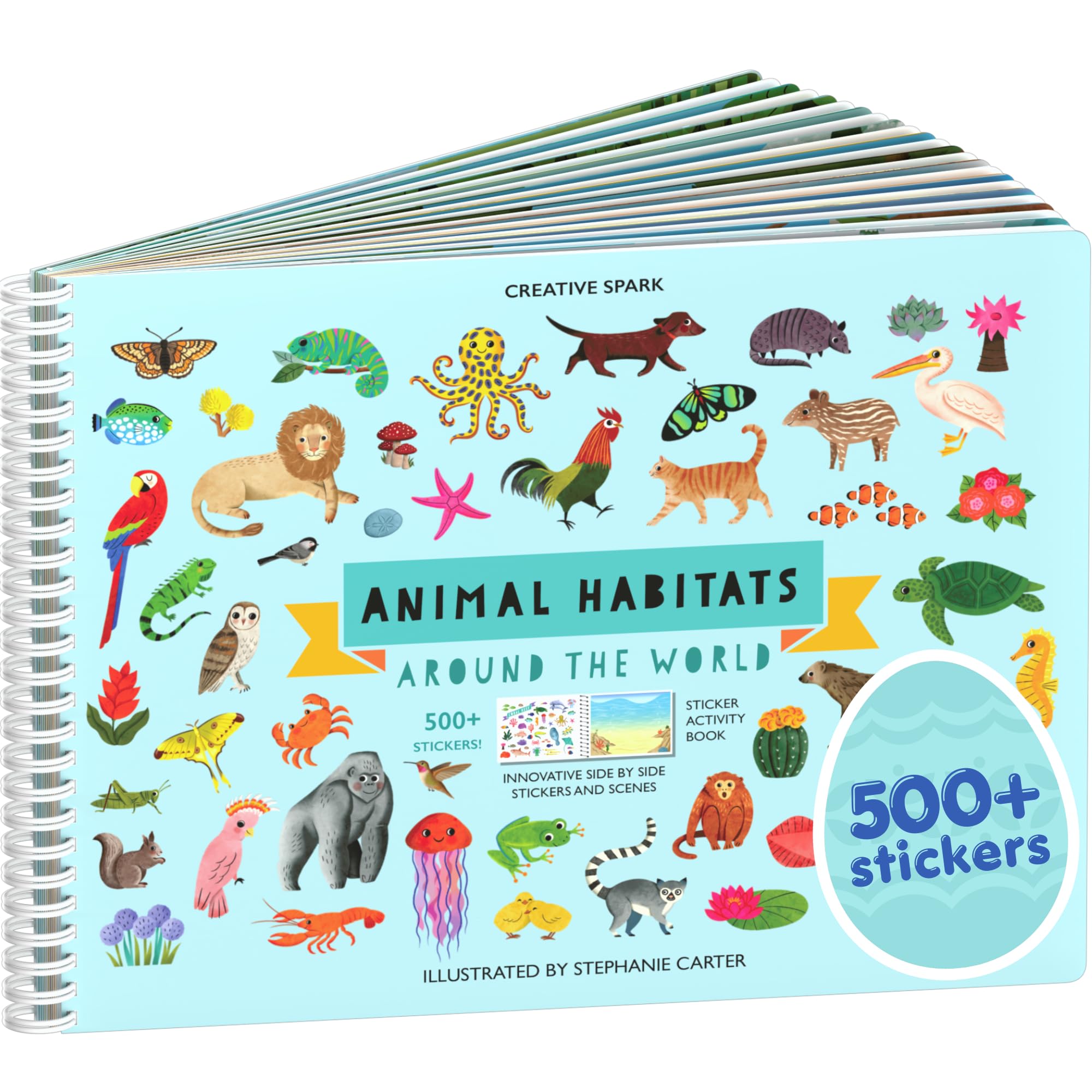 - WHAT'S INCLUDED?: Our Animal Habitats Sticker Book contains 500+ stickers to place on 12 unique scenes, and 12 coloring book pages all hand-drawn by our artists! Perfect for kids 3-5, the animal sticker book includes scenes and critters from around the world including sea creatures in the ocean, woodland animals in the forest, farm animals in a barn, and many more for boys and girls!