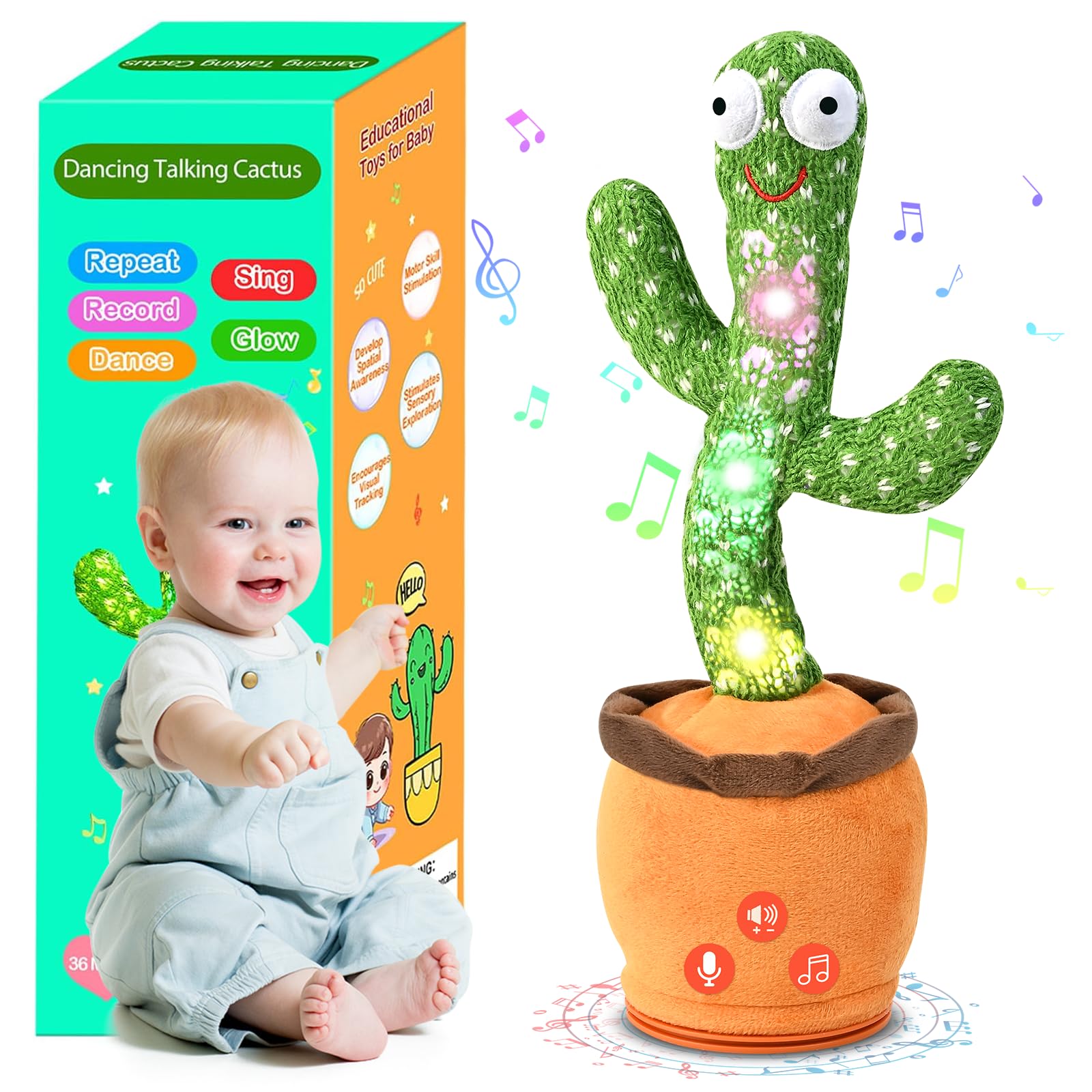 - CACTUS BABY TOY : Talking cactus toy is a great gift for kids or friends. This amusing toy is guaranteed to bring laughter to anyone who receives it! The mimicking cactus toy can record and replay your words. It dances, sings, and is suitable for babies, toddlers, and kids. Additionally, it can serve as a charming room decoration.